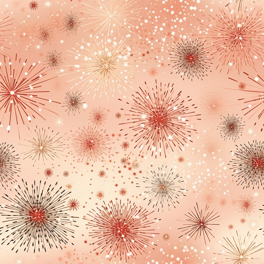 pattern of stars and fireworks, peach tones, high quality, detailed, top down closeup, texture --tile