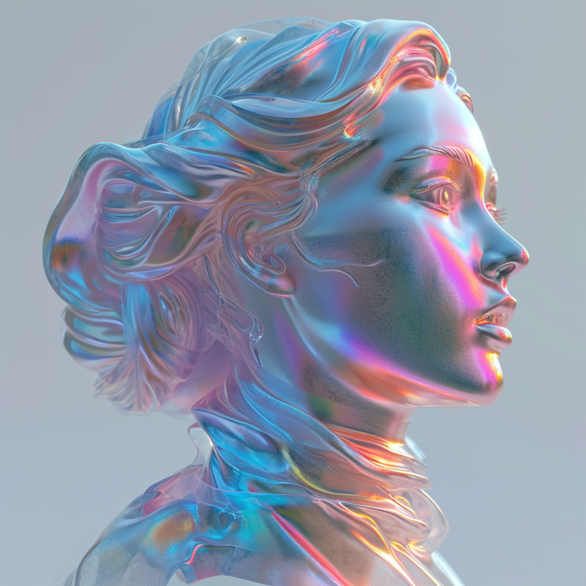 venus de milo statue made with holographic liquid, grey background::3 extreme macro photo of clean polished glass, edges with light from four different colors, depth of field, blurred, dark navy and dark azure, grey background, natural colors --v 6.0 --style raw --s 500 --c 3 --w 1