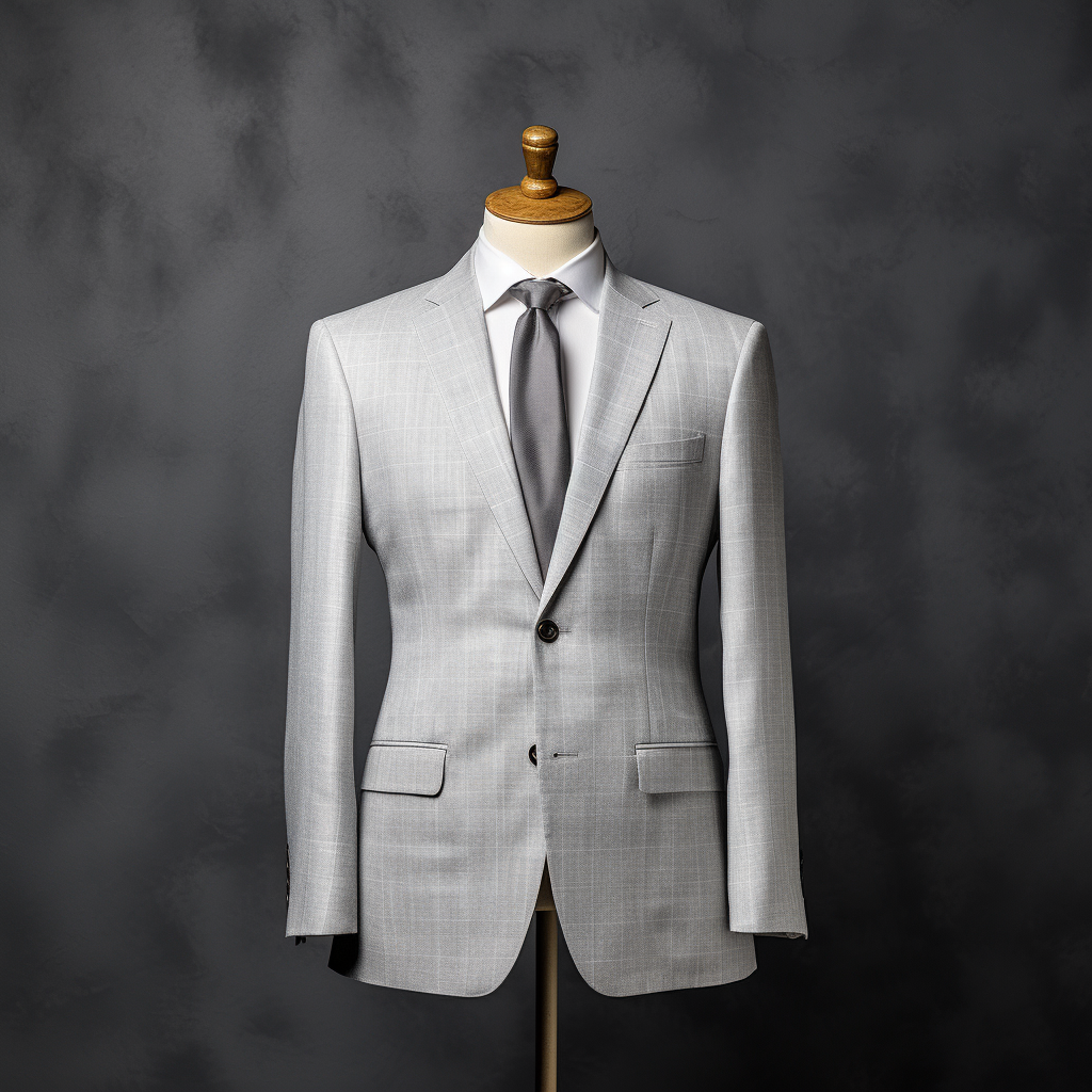 men white wool blazer on mannequin with gray background