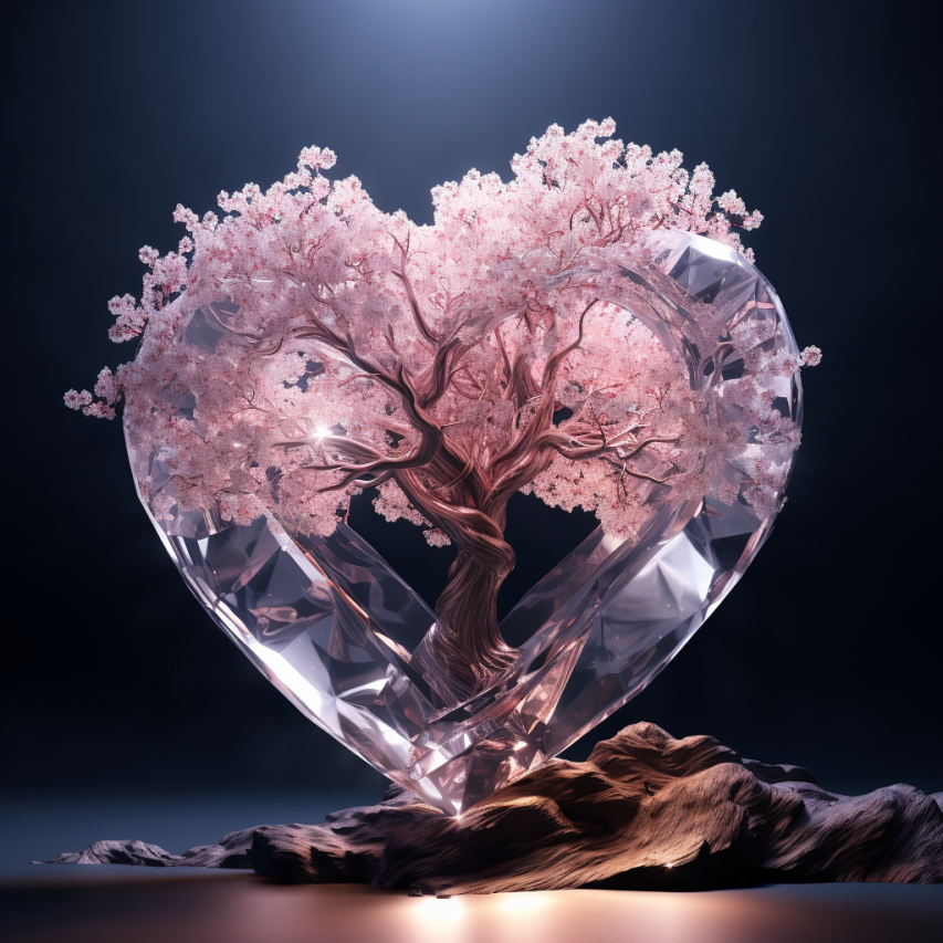 epic crystal heart with a sakura tree inside, glitter, sparks, 16k resolution photorealistic, masterpiece, breathtaking intricate details, realistic and lifelike cgi diorama, dramatic natural lighting, reflective catchlights, high quality CGI VFX fine art